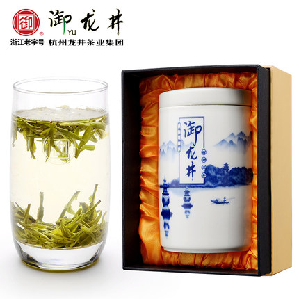 正宗老字号西湖龙井!精湛手工柴火炒制,老底子龙井滋味!送景德镇青花瓷罐、水晶杯和茶勺!馈赠佳品!不容错过!
