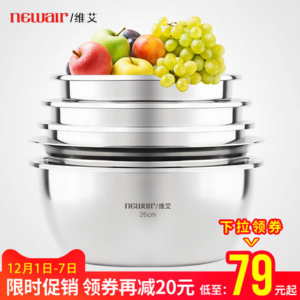 维艾 加厚 不锈钢盆 五件套,优质不锈钢材质,防摔耐用,拉丝质感,简约实用,全面升级加厚加深,加大加厚,报价99元,使用30元券,实付69元