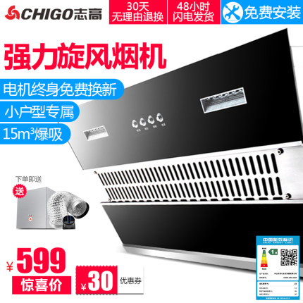【志高 CXW-200-K02 壁挂式侧吸式抽油烟机 免费安装¥539包邮】