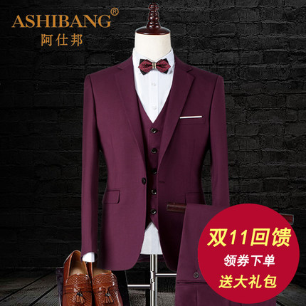 【男士修身商务正装职业西装三件套新郎伴郎服 券后143元起包邮】