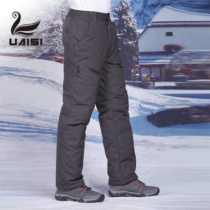 UAISI优艾丝情侣款800蓬羽绒裤,90%白鹅绒填充,800蓬松度,超厚款,零下30-40度都能穿,更保暖,更蓬松,无臭鸭味,更轻盈。UAISI优艾丝情侣款800蓬羽绒裤,外层采用防泼水面料,防风保暖,防钻绒,3D立体剪裁,舒适透气,循环锁温,内里90%白鹅绒填充,800蓬松度,四层加厚设计,有效防护加温,做工精致,采用YKK拉链结实耐穿,纽扣腰带,修身显瘦,带有口袋设计,可放置物品。