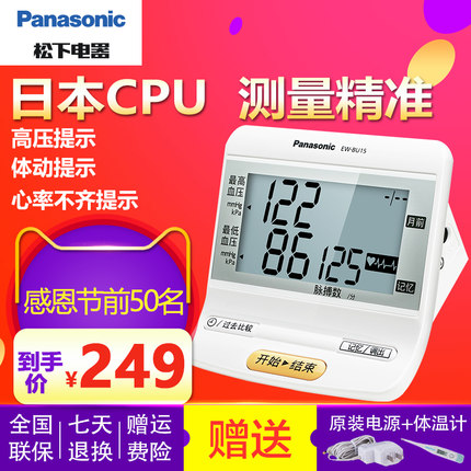 【松下 EW-BU15 家用上臂式全自动电子血压计 送体温计¥199包邮】