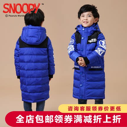 史努比 男童中长款过膝加厚保暖羽绒服,采用2016年新鲜白鸭绒,80%含绒量,蓬松度600+,售价¥359,可使用店铺¥100优惠券,实付¥259包邮,3色可选,90~160码全,80%含绒量,透气舒适