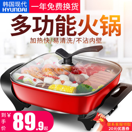 【现代 多功能家用电火锅5L 劵后79.9 – 89.9元包邮】