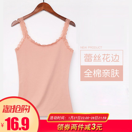 【蕾丝花边短款纯棉打底衫背心 券后11.9元包邮】
