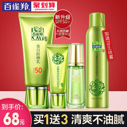 百雀羚官方正品,明星代言,春夏季持久防晒,天然草本成分,美白补水,男女通用,亲肤配方,长效保湿,防晒,隔离,所有肤质适用,必备防晒产品,送70ml喷雾+2个中样,超值春夏必备
