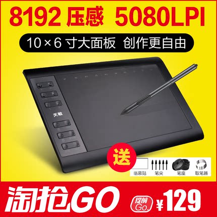 数位板如果嫌几百元起步的walcom太贵,可以看看这款~对于经常和绘图打交道的分友来说,一块优秀的数位板是必需品,对于不会输入法的老人而言,数位板还可以当作手写板用。天敏1060Plus数位板,尺寸10*6英寸,2048级压感,分辨率高达5080LPI,读取速度超过200点/秒,无卡顿,流畅自如,和wacom一样采用无源画笔不需要充电,12个SAI定制快捷键,兼容Adobe家等绝大部分主流设计软件。还送几十G教程文件。非常适合绘画初学者、美术系新生、业余爱好者、作为礼品送小孩。现商家售价99.9元起,领取20元优惠券,实付79.9元起包邮,入手好价。