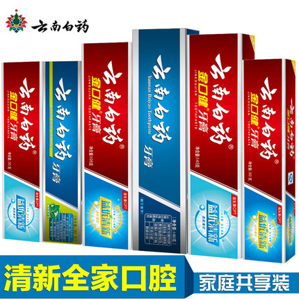云南白药牙膏六支套装,科学搭配,功效齐全,富含云南白药提取物,对口腔问题具有不错的缓解效果,一套解决牙齿美白,缓解牙龈肿痛,健康牙龈,减轻口臭,缓解口气的功效,您不容错过!