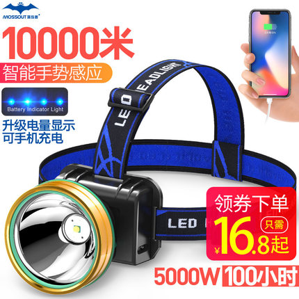 落伍者 头戴式 LED头灯 ,高亮LED灯芯,3000米超远射程+超长续航力,智能手势感应,防水耐用,千米远射,刺穿黑夜,户外运动/夜钓/打猎必备之选,商家领券拍下14.8元包邮