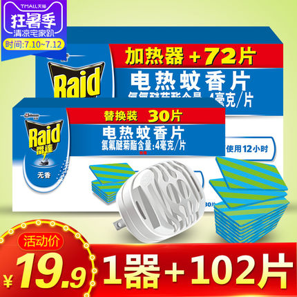 【雷达-电热蚊香片102片+加热器组合 劵后16.9元包邮】