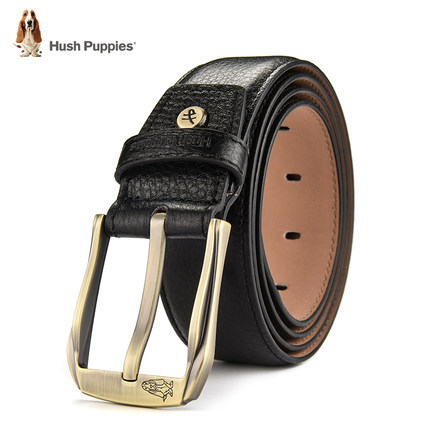 Hush Puppies 暇步士 男士皮带,采用头层牛皮材质,触感细腻,皮质坚韧耐用,不易变形,经典针扣造型,针扣上雕刻有小巴吉度猎犬,凸显品牌文化,整体非常简约,适合成熟男士选择。
