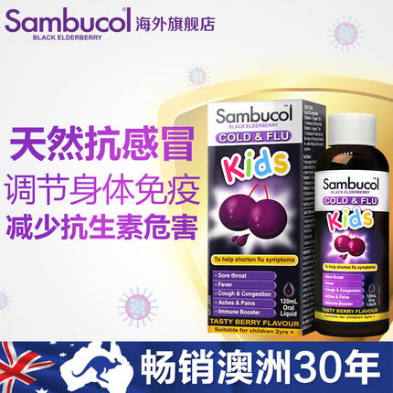 【预防感冒加速恢复,Sambucol 小黑果黑接骨木VC糖浆儿童补锌维VC保健品120ml 劵后69元包邮包税】