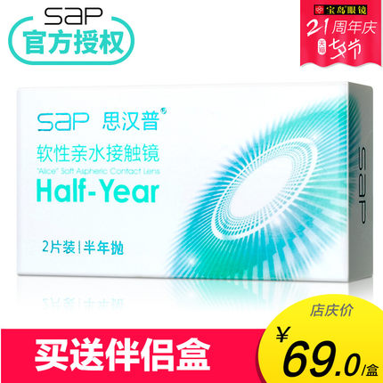 【宝岛眼镜 思汉普 sap 隐形近视眼镜 半年抛2片装 劵后29元包邮 平常69元】