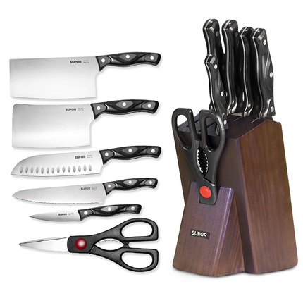 【券后只要139元】苏泊尔刀具厨具7件套,不锈钢,木刀座,送菜板,送磨刀棒。