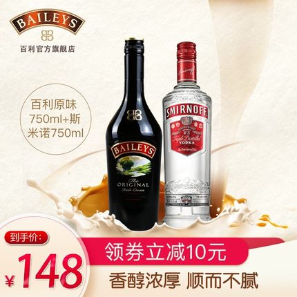 【官方旗舰店:爱尔兰原产 百利 甜酒baileys原味750ml+斯米诺750ml组合套装 128元包邮】