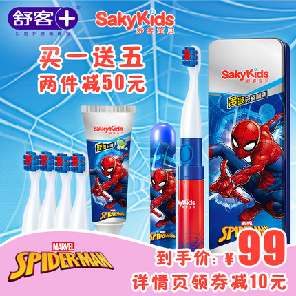 【舒客舒克 B2 儿童2-3-6-12岁声波电动牙刷 一共4个刷头+2只牙膏 69元包邮(109-40劵)】