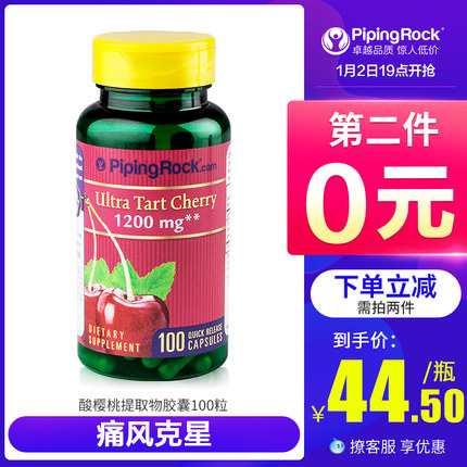 【第二件0元:美国 PipingRock 酸樱桃胶囊 100粒*拍2件 预防痛风降尿酸 2瓶69元,低至24.5元/件! 京东89元/瓶】