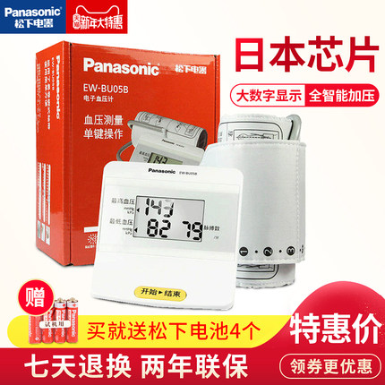 【日本原装cpu 全国联保:松下 上臂式血压测量仪 BU05B 券后149元包邮(京东199元)】