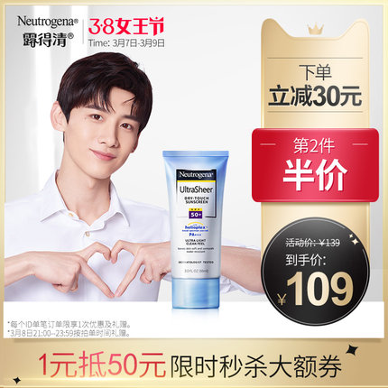 【美国进口 露得清 高倍轻透防晒霜乳液 88g SPF50+ 69元女王价 正价214元】