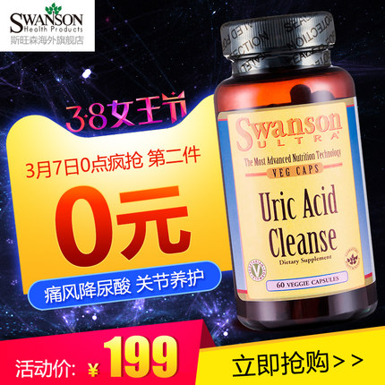 这款美国 斯旺森 痛风降尿酸高胶囊,复合七种天然植物成分,可以调节人体酸碱平衡中和过多酸性物质,促进尿酸排泄,降低血清尿酸含量,进而减轻肾脏负担和尿酸过高引起的关节疼痛,有效缓解通风症状,规格为60粒x2瓶,每天1粒。