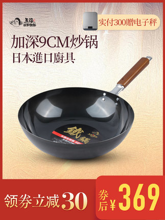 【日本原装进口 五福源仕 物理不粘无涂层平底铁锅 32cm 电磁炉燃气通用 劵后269元包邮 同款京东419元】
