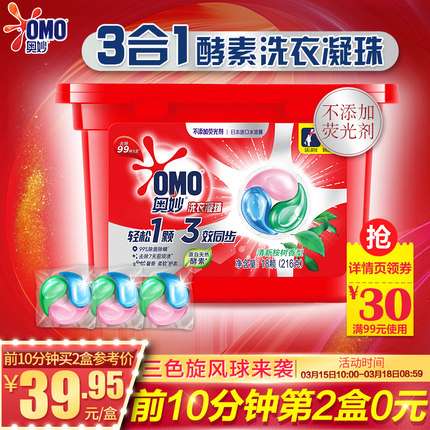 【10点抢 奥妙 三合一清新桉树洗衣凝珠 216G 18颗/盒*2件 69.9元包邮 前10分钟第2盒0元】