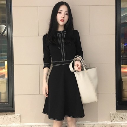 女人衣橱不能缺少一件小黑裙,黑色一直是时尚的经典,深邃、神秘、低调、集于一身,好质感,收腰显瘦,服帖裙摆,典雅气质凸显,长袖和七分袖可选~