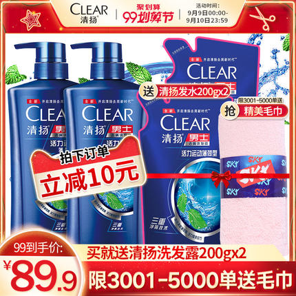 【C罗代言 清扬 男士活力薄荷运动洗发露 500ml*2瓶+补充装400g 79.9元】
