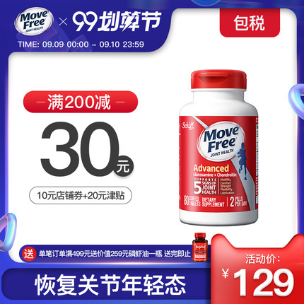 movefree 氨糖维骨力红瓶 80粒,根源修复强力镇痛,关节润滑缓冲抗压,增强抗炎症抗氧化,珍贵成分科学配比,药用+保养一步到位!天猫国际领券拍下89元包邮