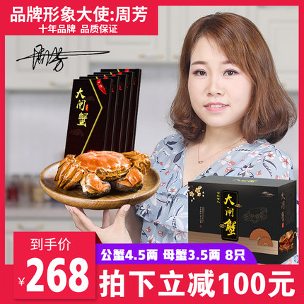 【明星周芳推荐】大闸蟹提货券,螃蟹礼券,公4.5两母3两共8只,礼盒豪华精美!豪华礼券设计,包装更有档次!