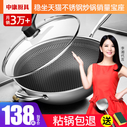 【李湘代言 中康 家用304不粘锅炒锅 128元包邮 赠锅铲】