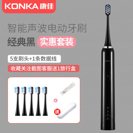 康佳 充电款超声波电动牙刷+5刷头,2000毫安的牙刷电池,充一次可用75天!38000次声波震动,磁悬浮声波专利马达,杜邦软毛刷头,防水设计,360度清洁口腔无死角。天猫有商家领券拍下59元包邮,月销量1.0万+件,评价4.8分。