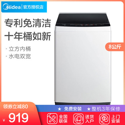 【美的 MB80ECO 家用全自动波轮洗衣机 8公斤 919元包邮】