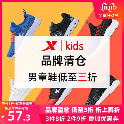 【11日 0点开始 拍三件 特步儿童秋冬革面跑步鞋 劵后162元包邮】