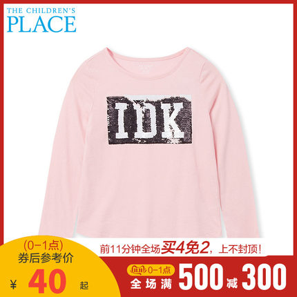 【The Children’s Place 2019新款女童双面亮片长袖上衣 3色59元包邮】