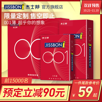 包含001超柔 3只、三合一20只、003超柔 2只,共15只,薄至0.01,体感真,娇柔水润,浓情一触即发。天猫jissbon杰士邦官方旗舰店售价169元,预付定金立减50元,还可领取60元优惠券,实付59元包邮,新品上市。