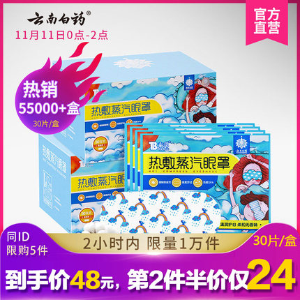 云南白药 热敷蒸汽眼罩 30片,缓解眼部疲劳的蒸汽眼罩,发热可持续30分钟以上,每天敷1片,给你的眼睛做SPA~长时间看电脑、看手机、追剧、出差旅途必备款哦!商家领券拍下38元包邮