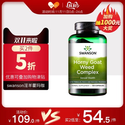 【双十一预告,Swanson 斯旺森 淫羊藿玛咖胶囊120粒*4件163元包邮包税(拍4件)】