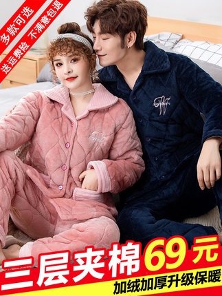 【柏歌妃 情侣三层夹棉加厚珊瑚绒睡衣家居服套装 多款69元包邮】