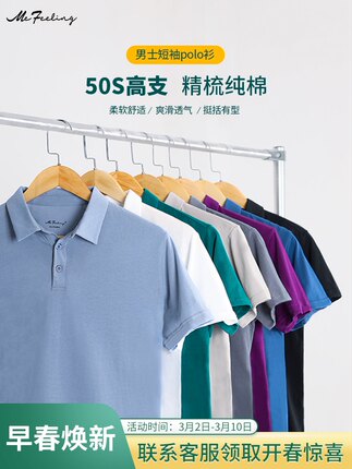 【me feeling 男士50S双细高支高密全棉短袖POLO衫 多色39.9元包邮】
