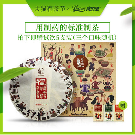 【帝泊洱 大叶禅 2016年云南熟普洱茶饼357g 68元包邮,赠普洱茶珍5支】
