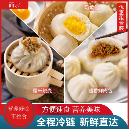 【面宗 糯米烧麦/奶黄包/酱香鲜肉包 12个*3袋 29.9元包邮】