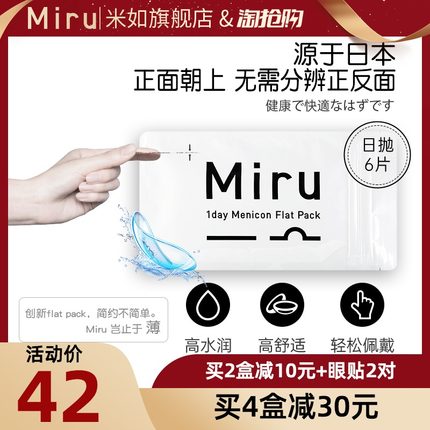 【旗舰店出品,Miru 米如 超薄日抛隐形眼镜6片装 27元包邮】