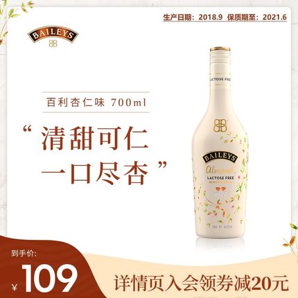 【美国进口 Baileys 百利甜酒 新杏仁味 700ml 99元包邮】