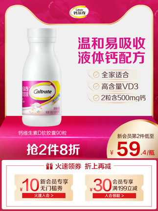 蓝帽认证,目前天猫商城钙尔奇官方旗舰店90粒装售价¥99,叠加¥60优惠券,实付¥39包邮,近期好价。