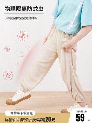 【petit main 2021夏季新款男女宝透气轻薄防蚊裤(90-140cm码) 多色59元包邮】
