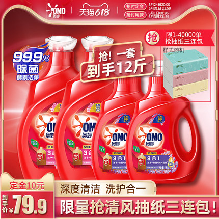 【奥妙 洗衣液三合一含金纺浓缩 12斤 54.9元61预售价 赠抽纸三包】