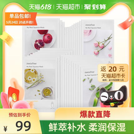 【天猫超市 悦诗风吟 innisfree 悦享鲜萃补水面膜 30片 49元包邮 返20元猫超卡后】