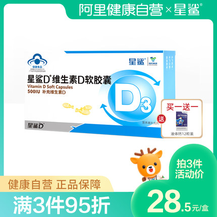 【星鲨 维生素D滴剂软胶囊 30粒*6盒 孩子成长必备 156元61预售价 送3盒12粒装】