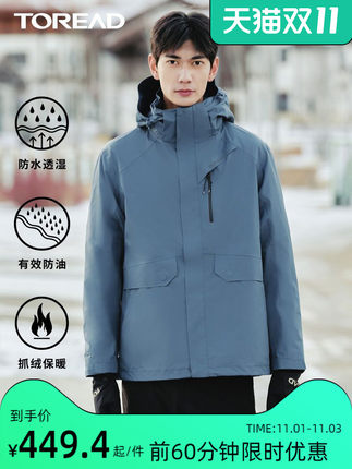 探路者 男女 三合一冲锋衣 三防科技面料+防水透气膜 304.37元包邮